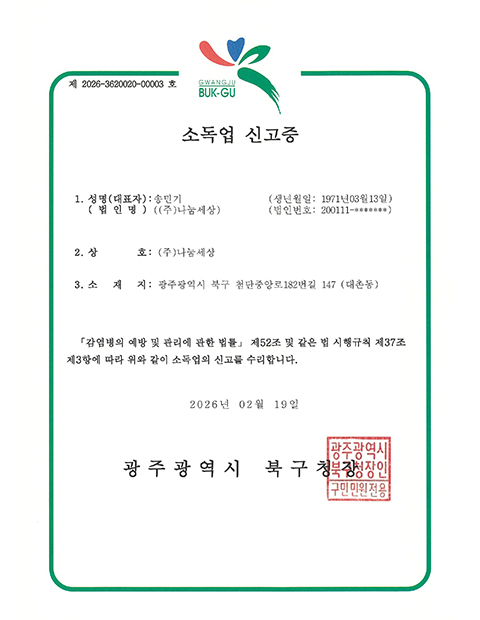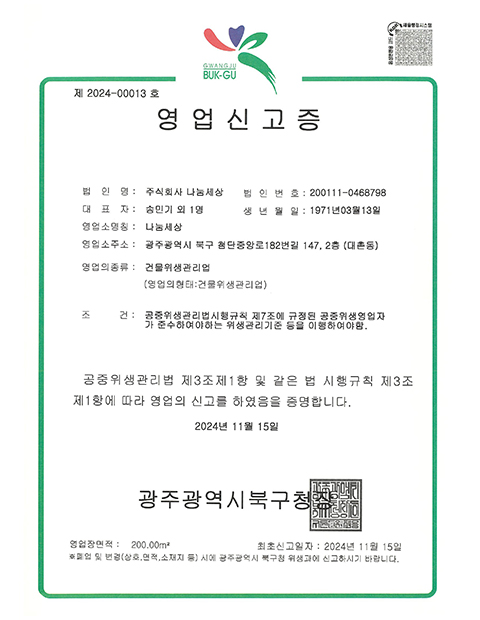 소독 대행(소독업)감염병 예방과 위생적인 환경 조성을 위해 다수인이 거주하거나 이용하는 건축물ㆍ시설물 등에